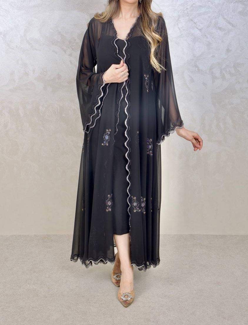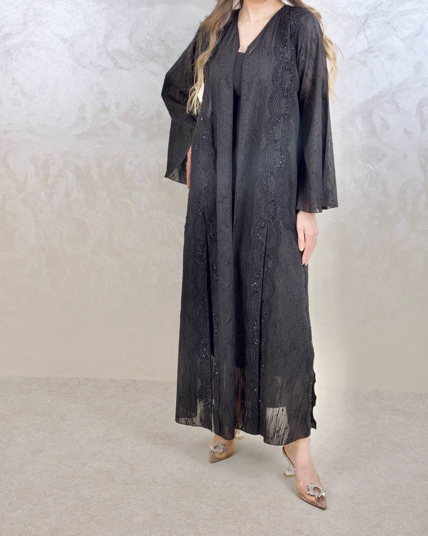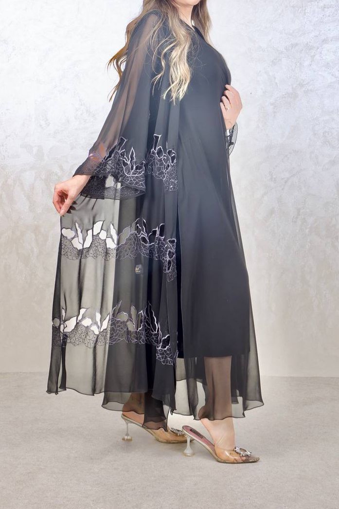 • Crepe Fabric Abaya – Computer Embroidery – Lozah Shawl Work